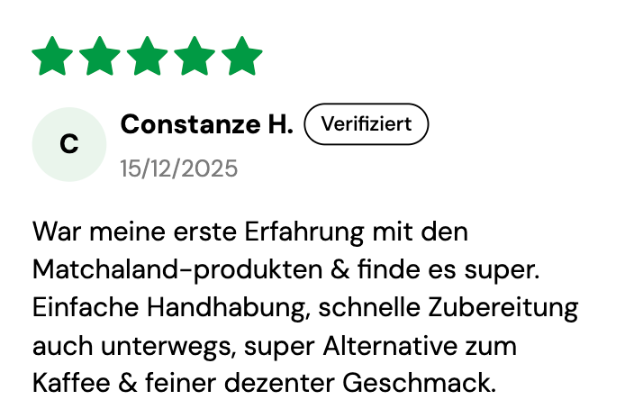 Einige unserer Kunden haben Matcha noch nie probiert, bevor sie ihre erste MatchaLand-Packung erhalten haben. Deshalb bieten wir eine 100-tägige Zufriedenheitsgarantie.